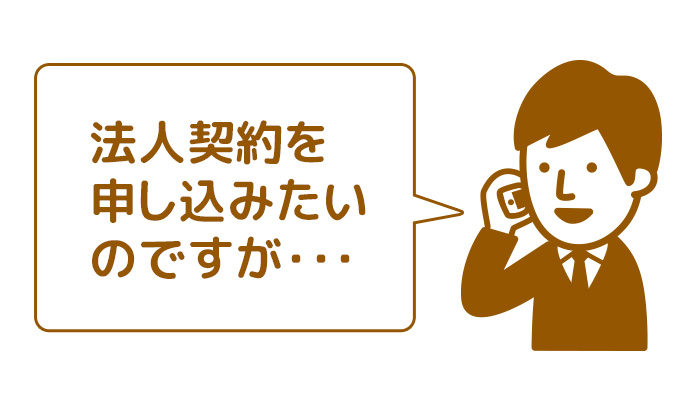 近くの店舗にお電話にて、法人契約したい旨をお伝えください。